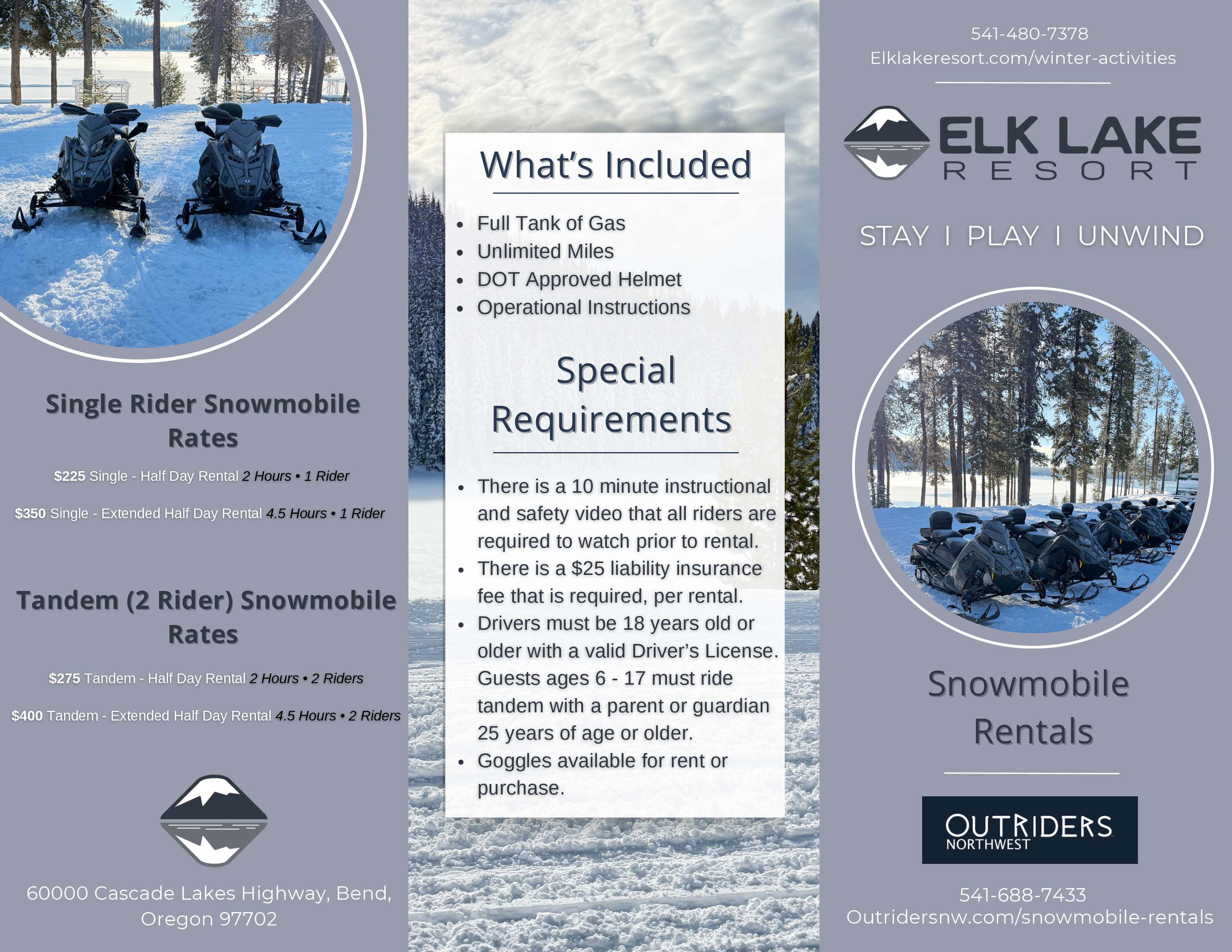 Mt Bachelor snowmobile rentals at Elk Lake Lodge